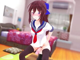Hikari futa masturbacija na stolu, futa shemale