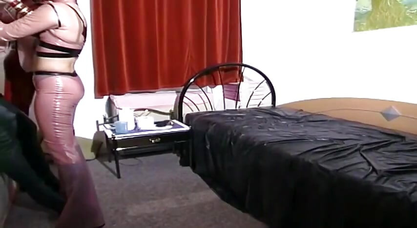 Fetish latex sluts pumping the cock of a slave